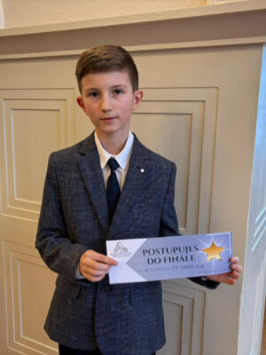 Dominik Brettschneider, žák 1. ročníku II. stupně ze třídy pana učitele Václava Strouhala, získal 1. místo s postupem do krajského…