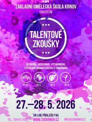Základní umělecká škola Krnov uskuteční ve středu 27. května 2026 talentové zkoušky žáků do hudebního oboru a ve čtvrtek 28…