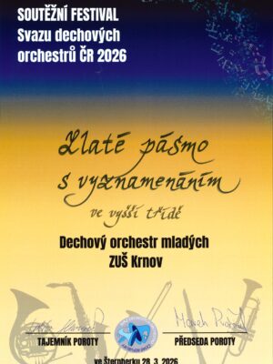 ZLATÉ PÁSMO S VYZNAMENÁNÍM PRO DOM ZUŠ KRNOV Dechový orchestr mladých ZUŠ Krnov opět skvěle reprezentoval nejen naši školu,…