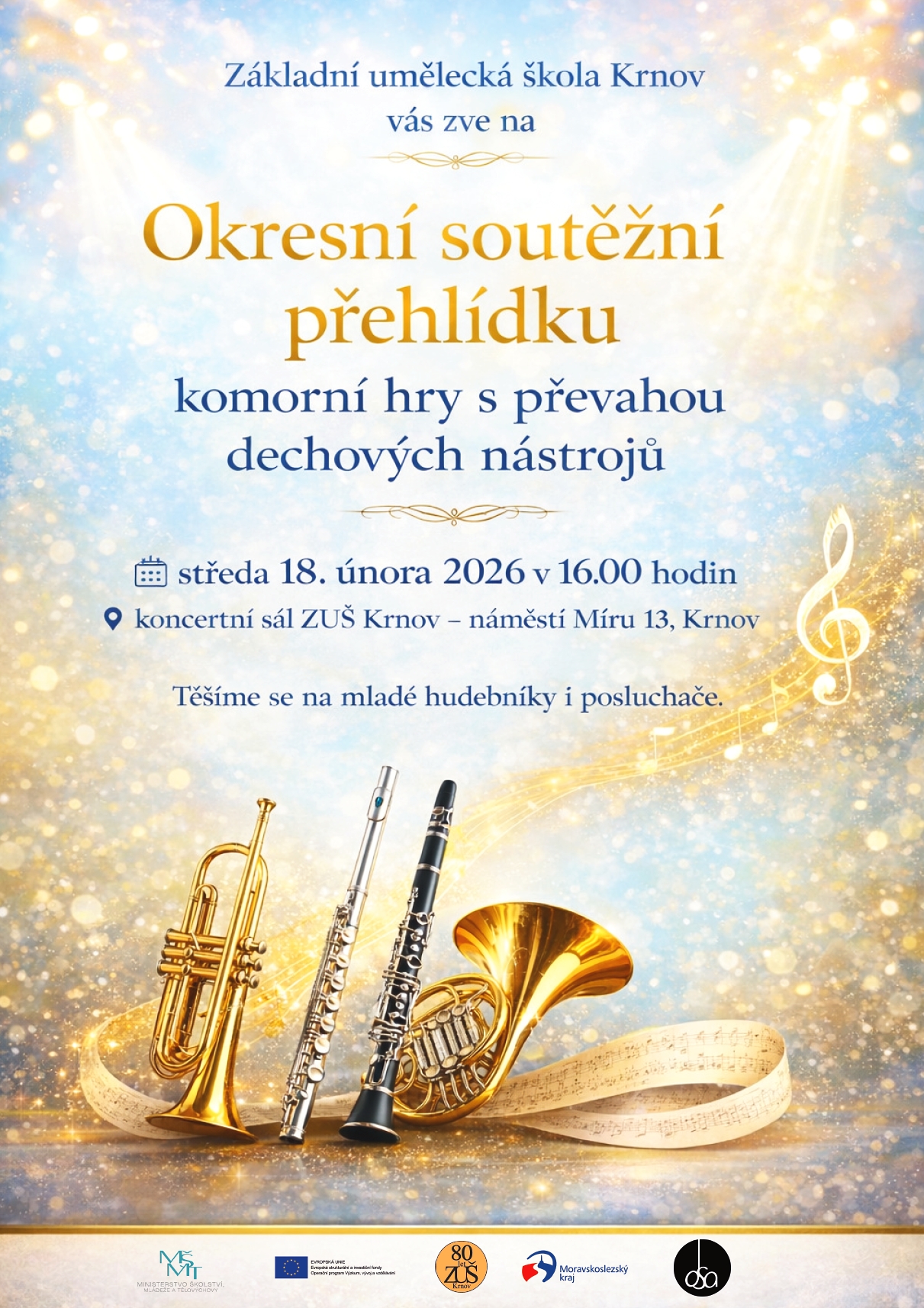 srdečně Vás zveme na Flétnový koncert žáků pedagožky Kateřiny Vidličkové, který se uskuteční v úterý 24. února 2026 v 17:00 hod. v Koncertním sálu ZUŠ Krnov na nám. Míru 151/13, Krnov.