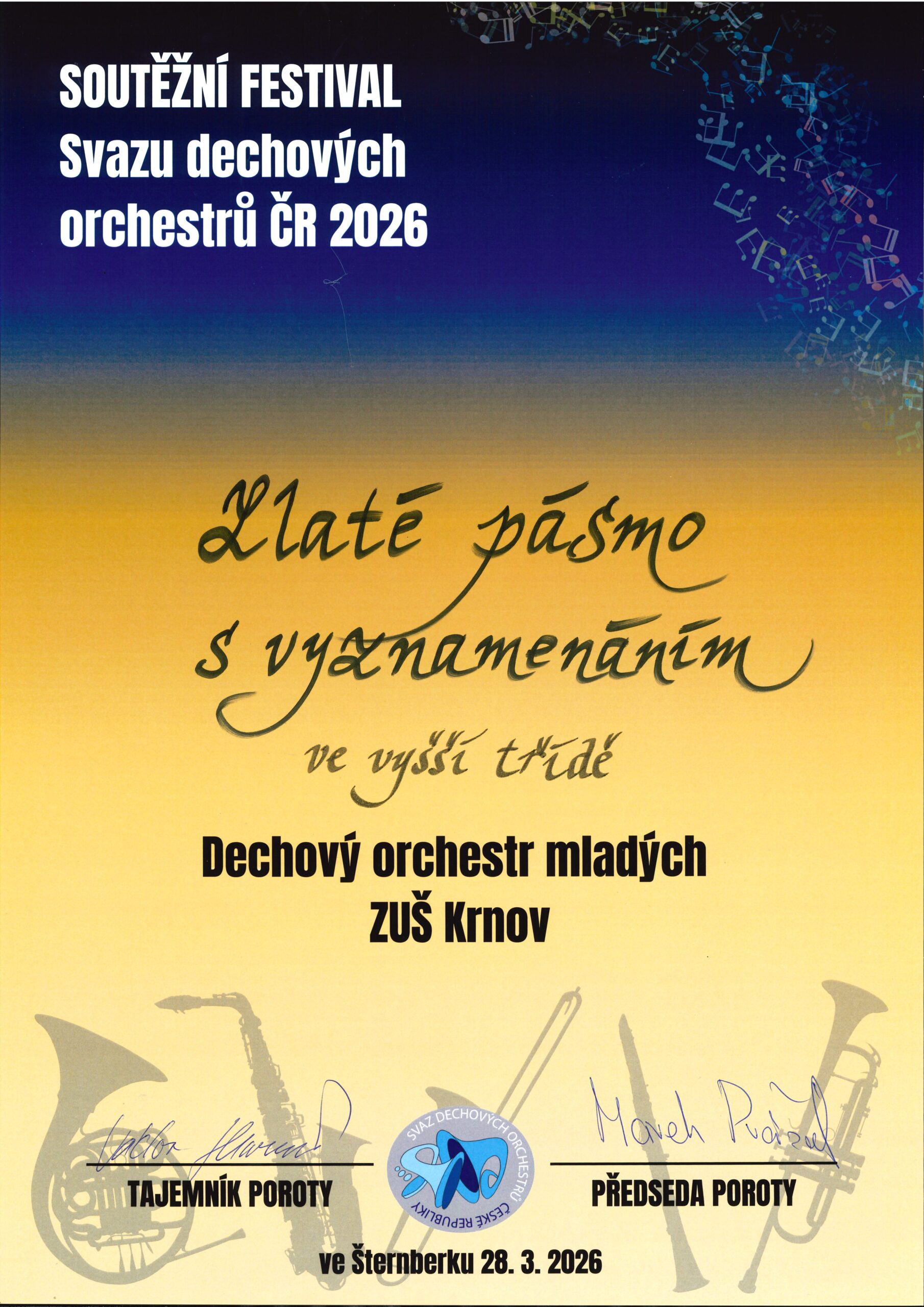 ZLATÉ PÁSMO S VYZNAMENÁNÍM PRO DOM ZUŠ KRNOV