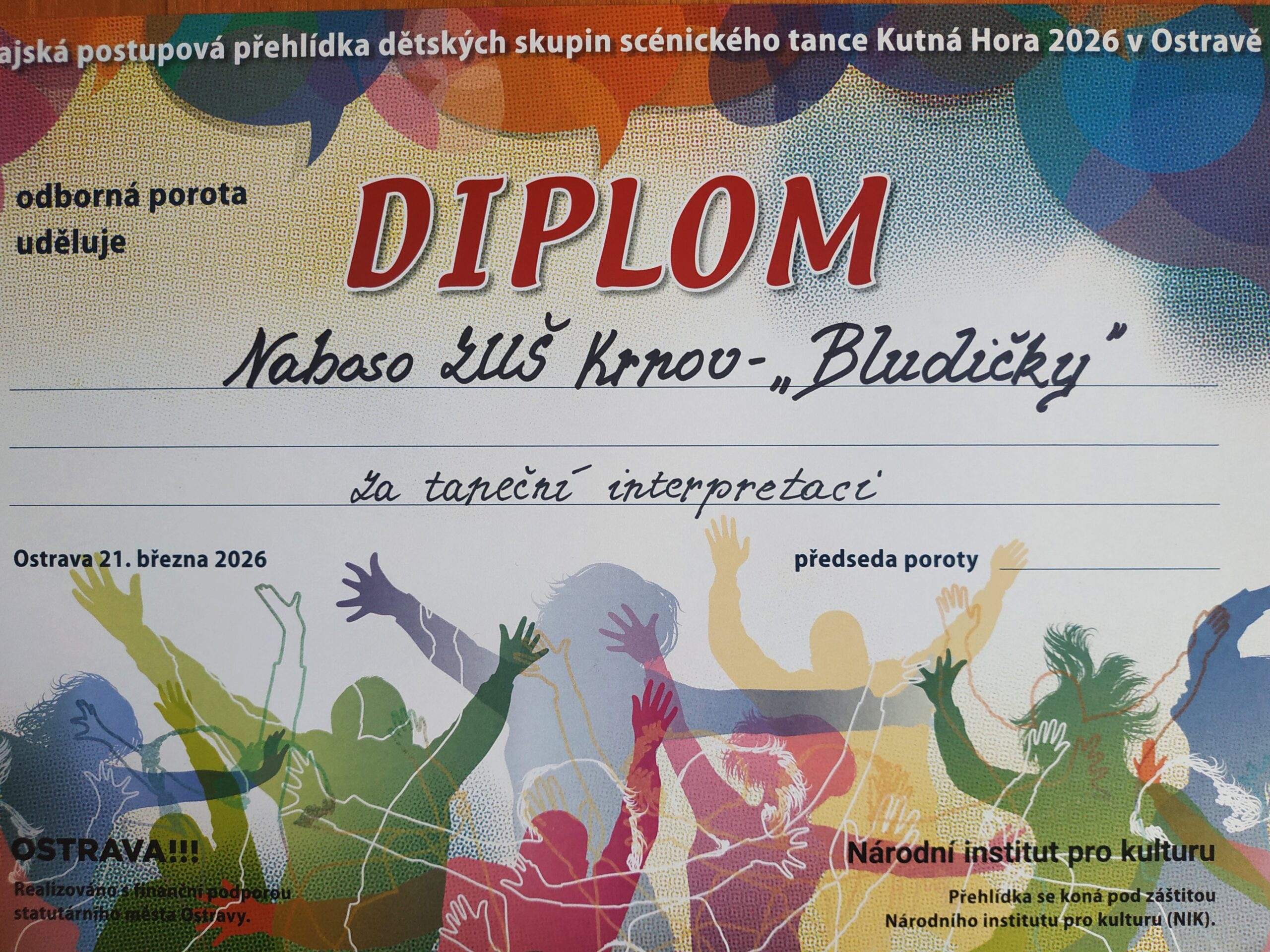 V sobotu 21. března 2026 se na Janáčkově konzervatoři v Ostravě konala Krajská postupová přehlídka dětských skupin scénického tance. Náš taneční soubor se v programu prezentoval dvěma choreografiemi.