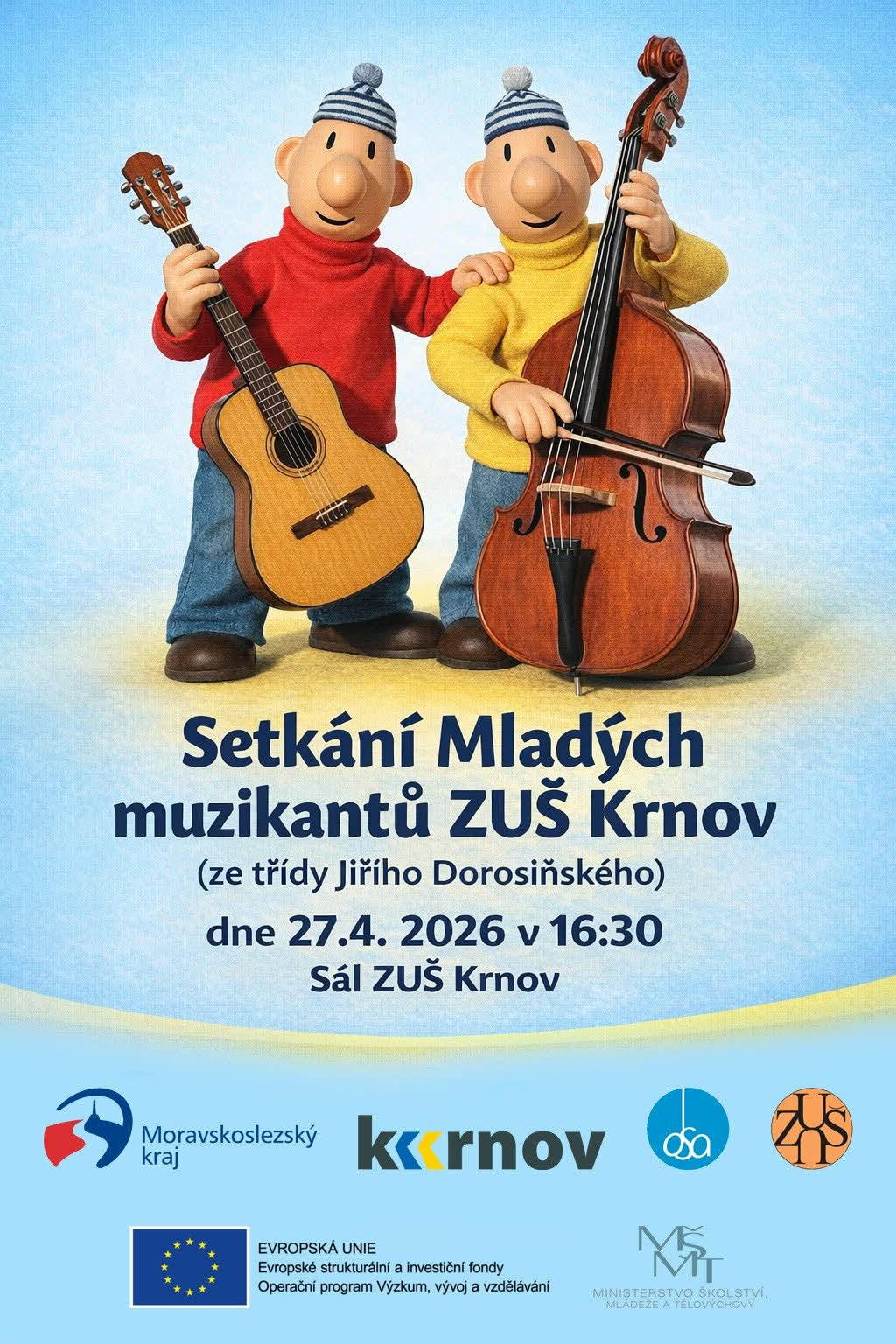 srdečně Vás zveme v pondělí 27. dubna 2026 na milé hudební odpoledne, kde se představí mladí hudebníci ze třídy Jiřího Dorosiňského.